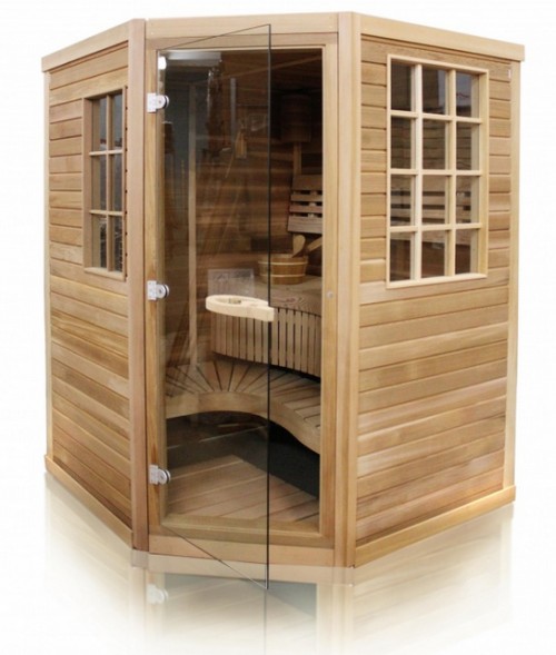Готовые сауны из канадского кедра являются на сегодняшний день самыми популярными. Кедр имеет роскошный цвет, мягкий и приятный древесный аромат, мгновенно оказывает успокаивающий эффект и делает прибывание в сауне максимально комфортным. Для того, чтобы подчеркнуть красоту дерева, в конструкции стен используется вагонка специального профиля: так лучше видна текстура натурального кедра. Сауна имеет компактные размеры, что создает дополнительное преимущество, так как она не требует много места и может быть установлена даже в обычной ванной комнате. При этом, чтобы избежать ощущение замкнутости и раздвинуть внутреннее пространство, сауна оборудована прозрачной дверью и имеет окна. Конструкция и внутренняя отделка продуманы до мелочей: просторный верхний полок из канадского кедра, удобный доступ к печи, и защитные ограждения из талькохлорида, которые предохраняют стены и полок от перегрева. Кроме того, в комплект сауны входят такие необходимые аксессуары, как подголовник специальной формы, кадушка, термогигрометр и песочные часы.
