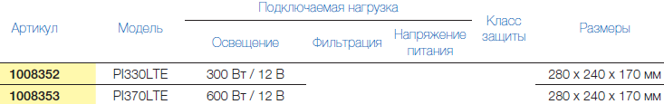 КОМБИНИРОВАННЫЕ бЛОКИ УПРАВЛЕНИЯ ФИЛЬТРОВАЛЬНОЙ УСТАНОВКОЙ И ОСВЕЩЕНИЕМ бассейна 1008353 Pi370lTe 600 Вт / 12 В