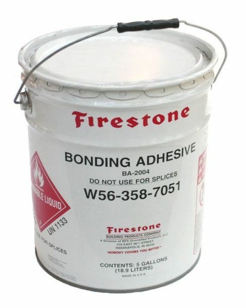 Монтажный клей наносится равномерно на полотно мембраны и на основание. Если производитель работ пальцем не ощущает липкости клея, значит слой слишком тонок и необходимо нанести повторный слой. Уменьшение толщины слоя монтажного клея недопустимо. Норма расхода при стандартном применении — одно ведро 18.9 литра на 25-30 квадратных метров.